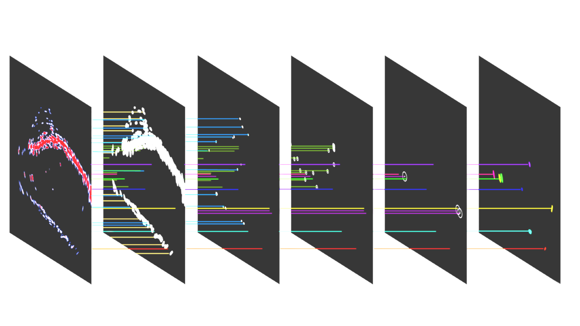 Raw Radar (left) and the stages of ProteusCore (right) detection, classification, and target tracking